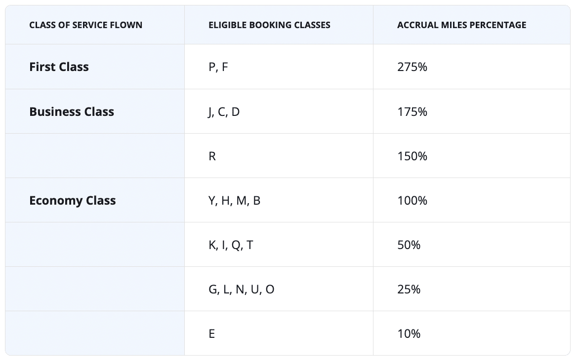 When it comes to earning Flying Blue miles on Oman Air flights, you can now earn up to 275% in miles of the actual distance flown. The full breakdown of the Oman Air earning scheme is as follows: