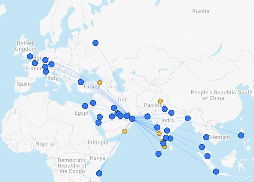 Oman Air is based in Muscat, and operates a modest number of routes primarily across the Middle East and the Indian Subcontinent, as well as to a handful of cities across South East Asia and Europe.