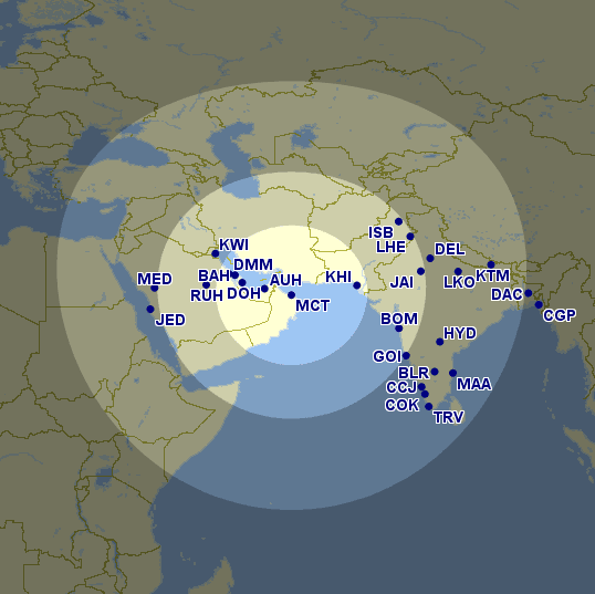 One mileage band further and it’s still quite a good deal, with Kuwait, Riyadh, the rest of Pakistan, and Western India projected to cost 9,000 Avios one-way in economy class or 16,500 Avios in business class.