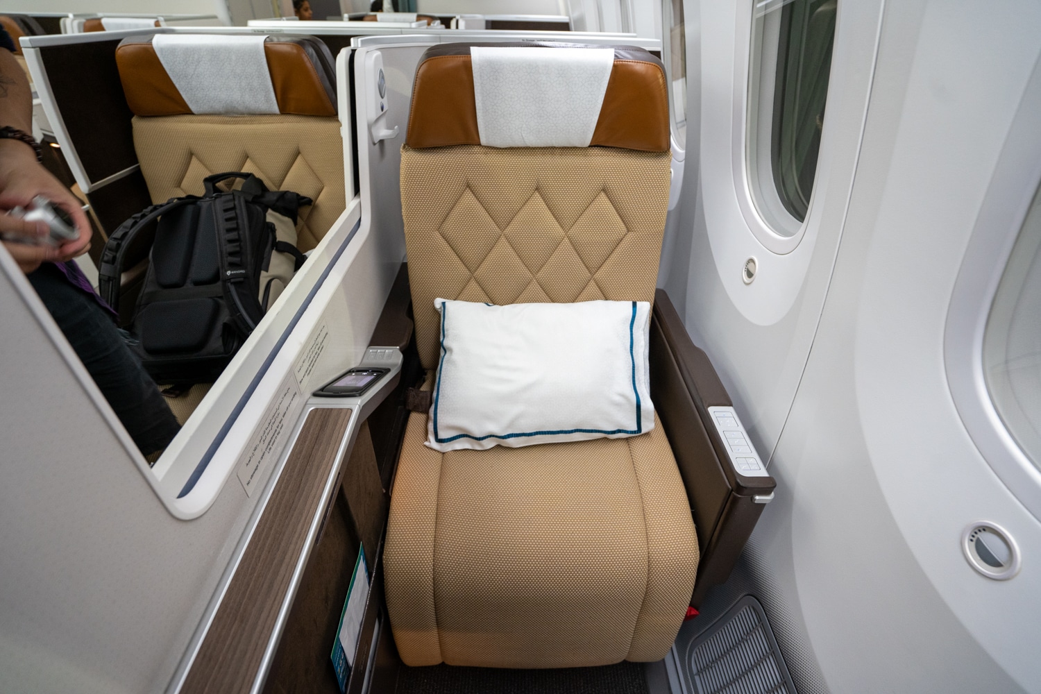 In business class, Oman Air is operating Apex Suites, which are identical to Japan Airlines’s flagship product. The 2-2-2 seating might not sound that competitive, but the privacy afforded at window seats is unparalleled.