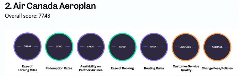 I’m not surprised to see Air France KLM Flying Blue and Air Canada Aeroplan take the top two spots, given their relative ease of acquisition through co-branded credit cards and transferable points currencies, as well as the number of airlines that can be booked and competitive redemption rates, amongst other factors.