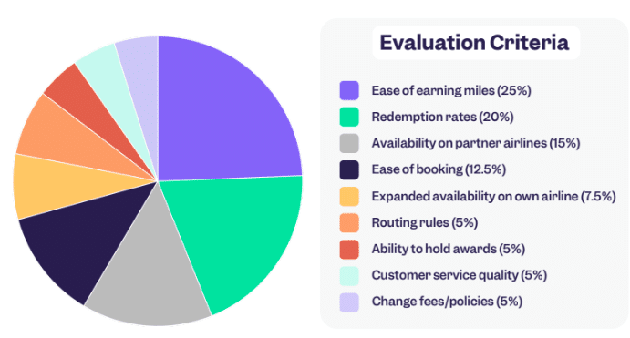 In identifying its top ten airline reward programs, points.me took into consideration a variety of criteria that didn’t just deal with earning and redeeming points. The rankings were also based on factors like seat availability and customer service quality, as well as change fees and policies.