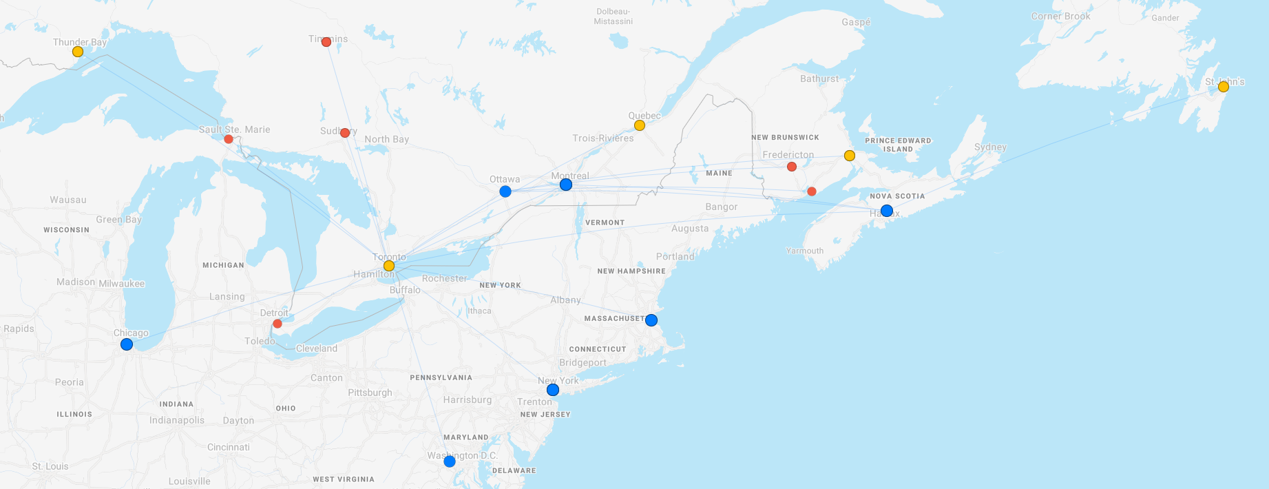 Porter is an airline that operates out of Billy Bishop Airport (YTZ) in downtown Toronto. Their fleet consists of 29 all-economy class Dash 8 Q400 turboprops. Porter’s route network is limited to the East Coast, with service to regional airports in Northern Ontario, the Atlantic provinces, and major hubs such as Boston, Newark, and Montreal.