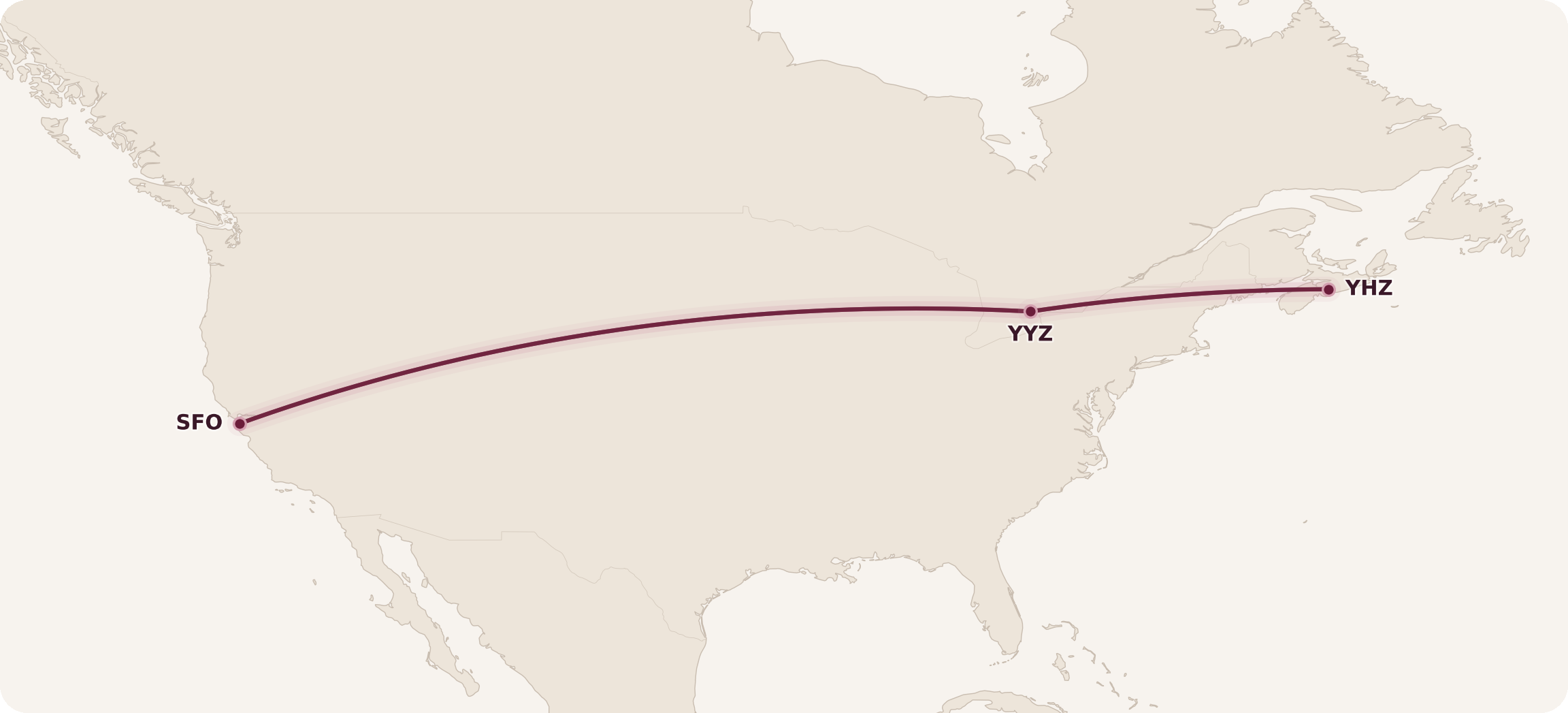 According to FlightConnections, Porter’s longest nonstop flight is from Toronto to Halifax at 1,274 kilometres and about 3 hours of flight time. On the Embraer, their furthest projected destination is San Francisco at triple the distance.
