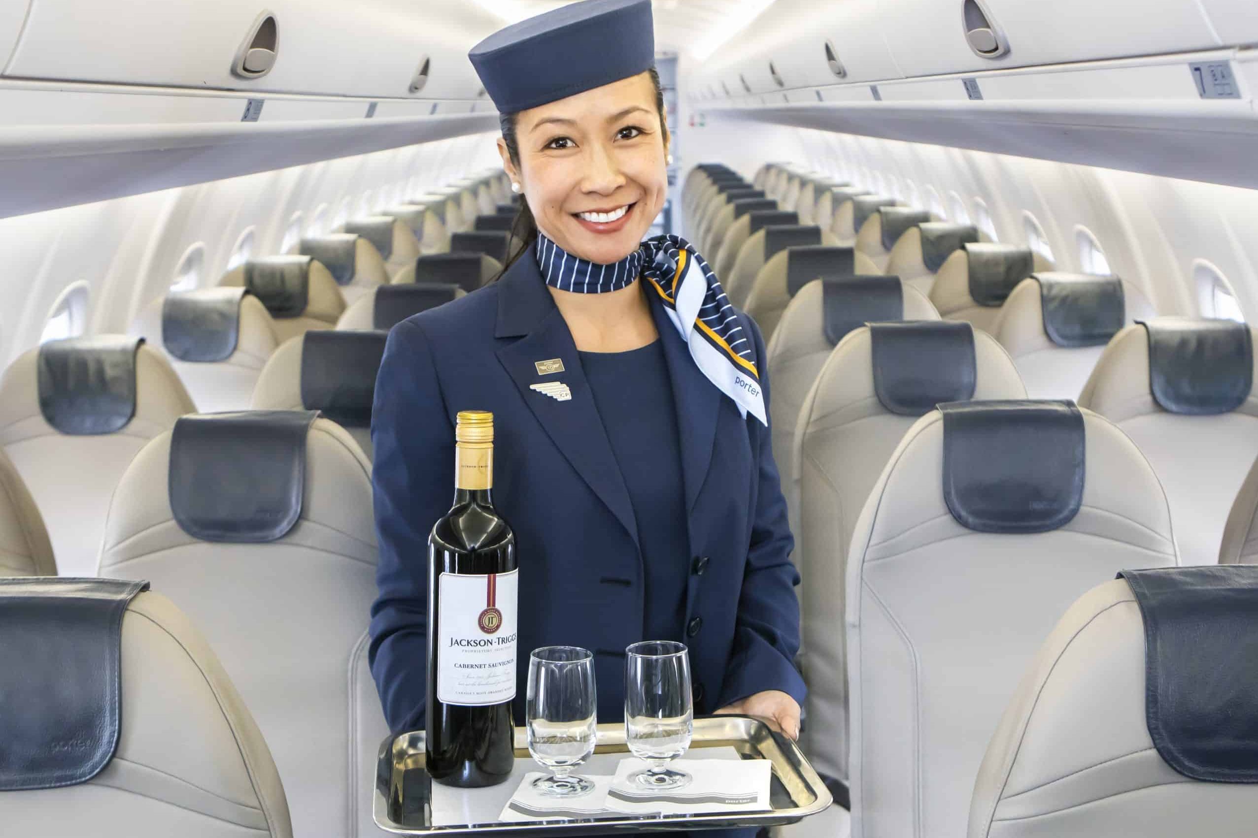 PorterReserve is the airline’s all-inclusive economy experience. Passengers who select this will enjoy a range of included benefits, such as a dedicated airport check-in area, early boarding, extra legroom, fresh meals on longer flights, two free checked bags, and no change fees, as well as beer, wine, cocktails, and premium snacks.