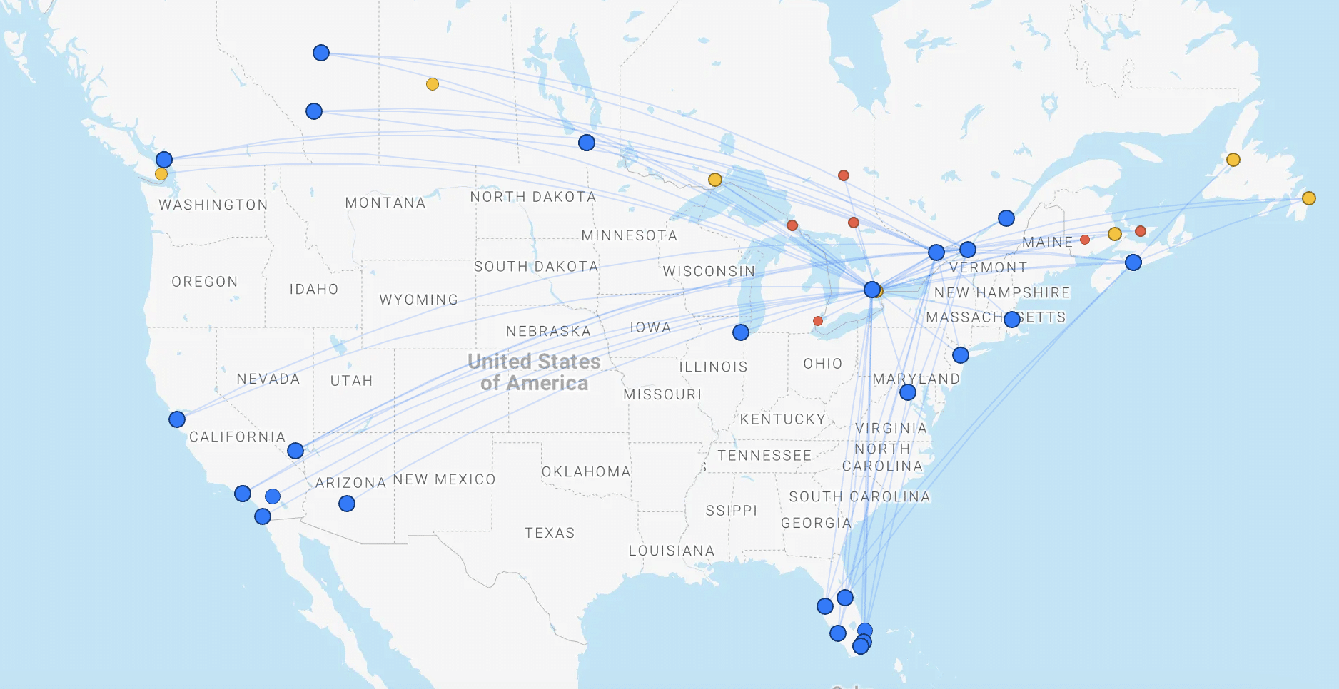 - Announced dozens of new routes and new destinations across North America