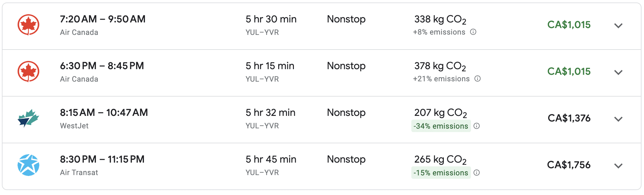 - PD372, Vancouver (YVR) to Montreal (YUL), departing 8:05am and arriving 4pm
