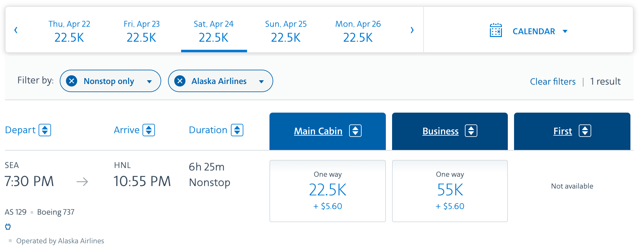 For reference, here are Alaska’s “saver” rates (the same class that partner awards can book) for travel on their own aircraft:
