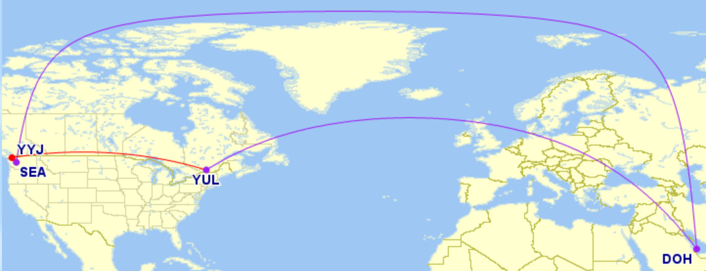 If you ask me, the beauty using the Alaska/Seattle link is that it lets you maximize your time in desirable cabins for a competitive award price. For travel to Doha, our friends in Victoria would get one hour on Alaska’s Dash-8 propeller plane, followed by 14 hours on Qatar Airways Qsuites. I’d certainly take this over flying through Montreal on a separate Aeroplan ticket, with five hours on domestic Air Canada, then 12 hours in Qsuites.