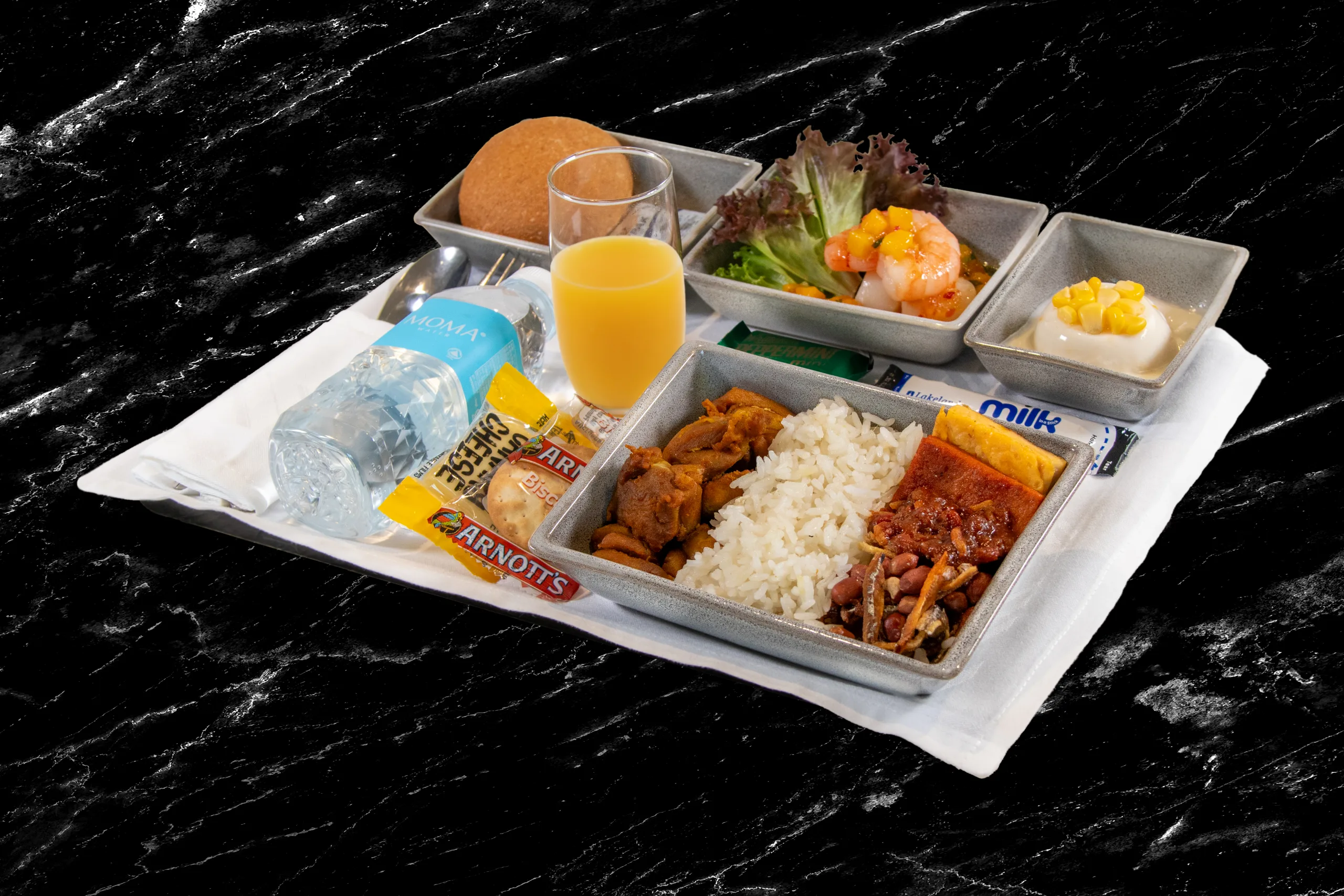 For the main course, passengers can select from two premium options – either international or Asian cuisine – on every flight.