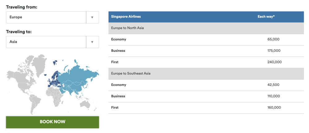 This will also set you back 80,000 miles, which is higher than, say, the 75,000 miles that a program like Aeroplan might charge, but then again, you can’t get the direct Singapore Airlines business class flight on Aeroplan, so that’s a moot point.