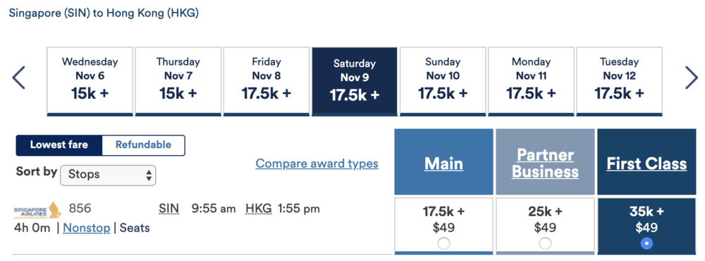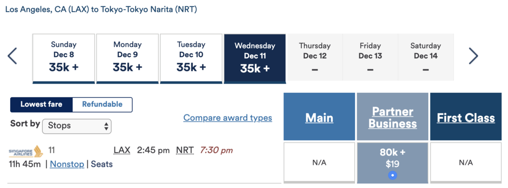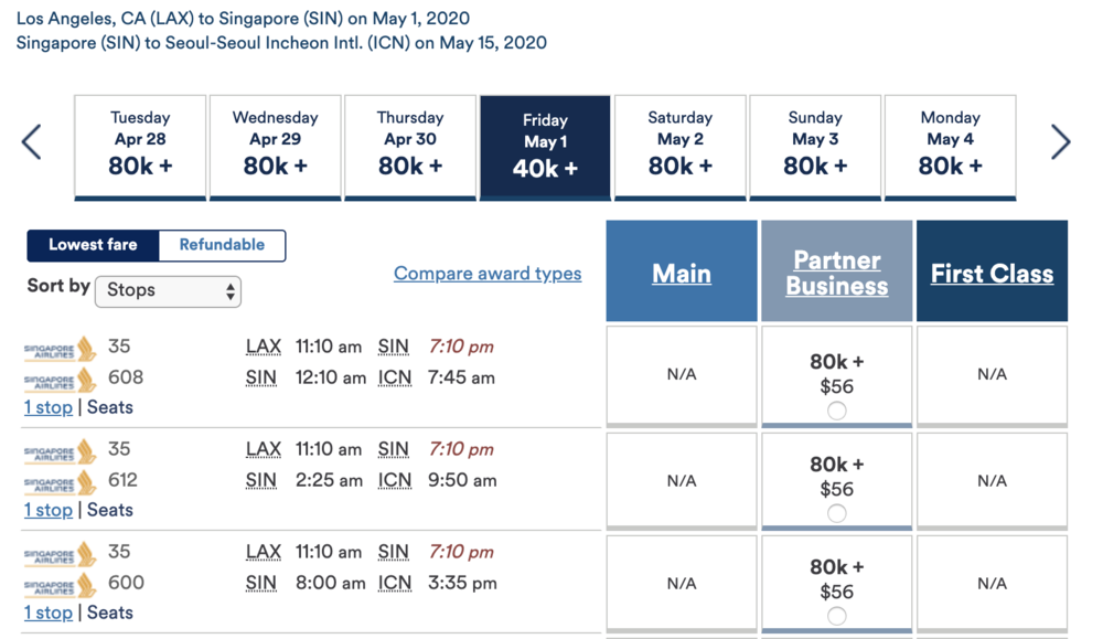 In fact, even if you only wanted to book a flight from North America to Singapore, you’d be better served adding on a throwaway leg to Tokyo or Seoul at the end and saving yourself 20,000 miles!