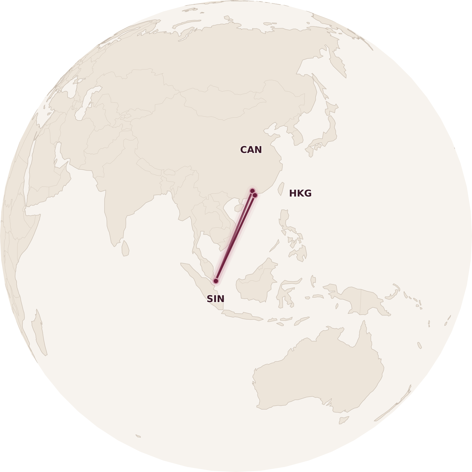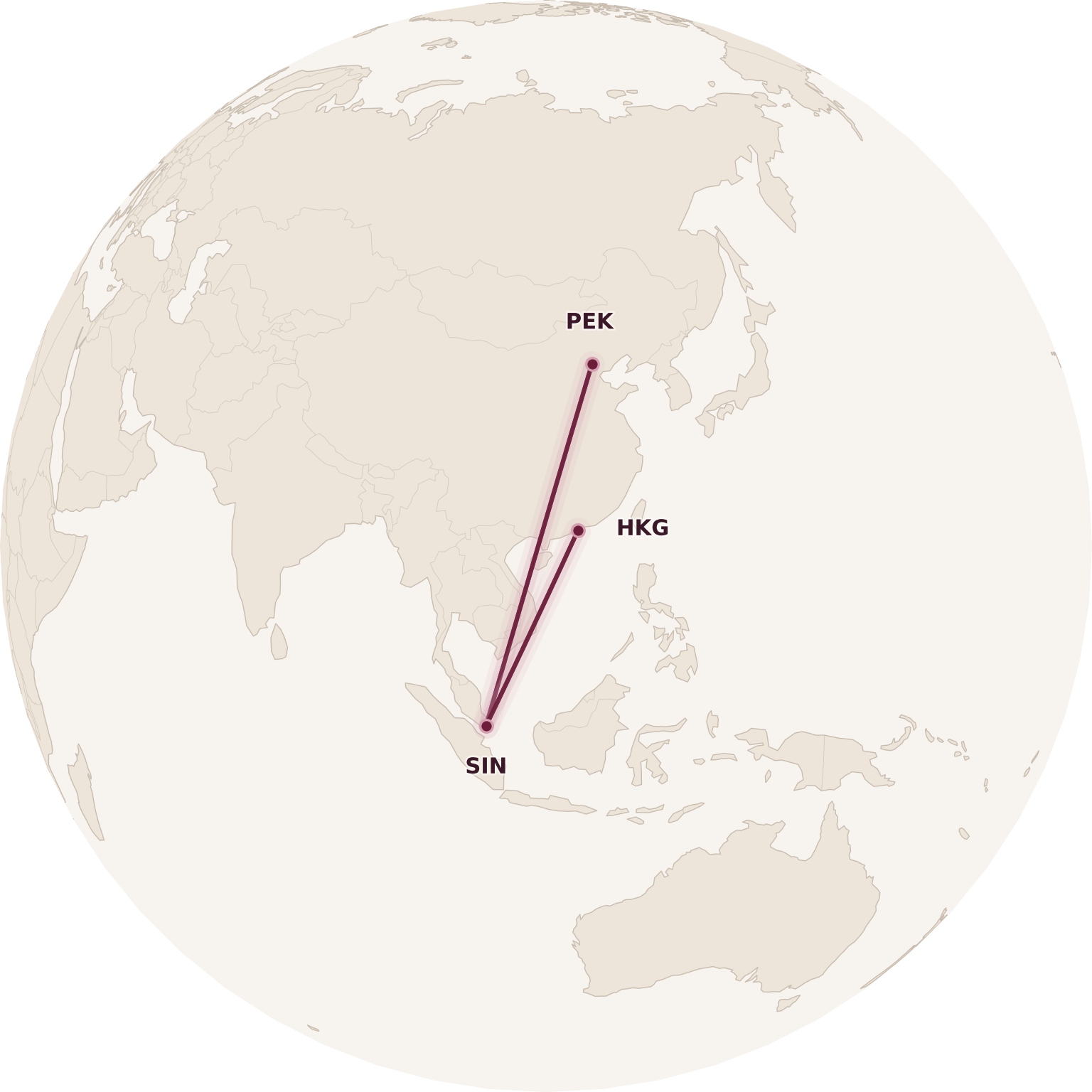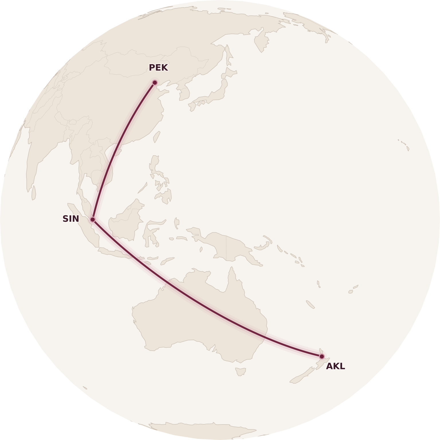 (Note that something like Beijing–Singapore–Shanghai will not work, since the two endpoints must be in separate jurisdictions for the ticket to be valid. Furthermore, Beijing–Singapore–Tokyo won’t work, since the latter would be considered part of “North Asia”, a separate zone. And finally, Shenzhen–Singapore–Hong Kong doesn’t seem to work either – now that would be far too easy!)