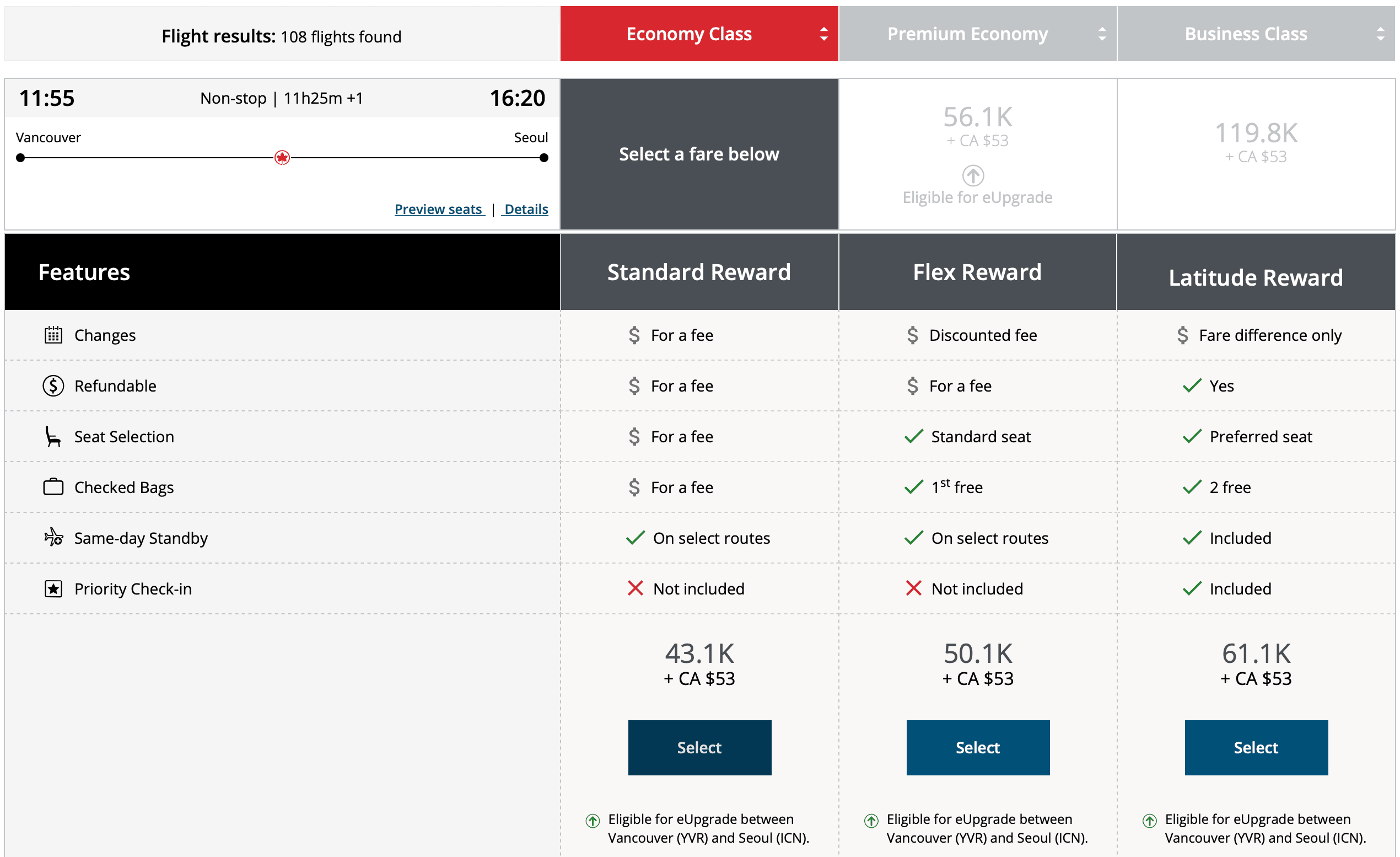 Air Canada flights can be priced exorbitantly under dynamic pricing, so using your eUpgrades with the “Latitude Attitude” strategy is the optimal way to upgrade into a business class seat.