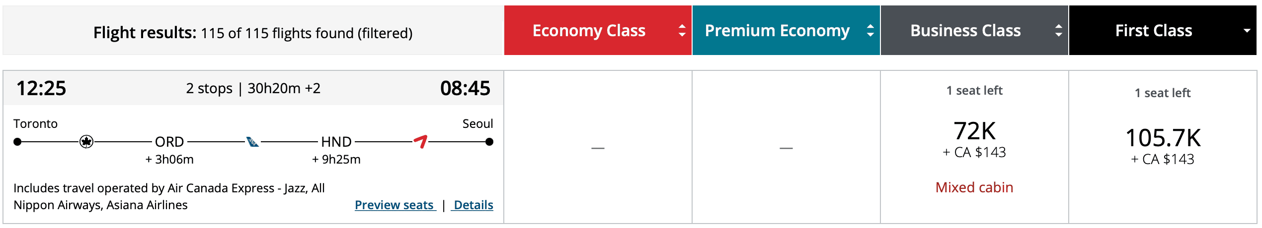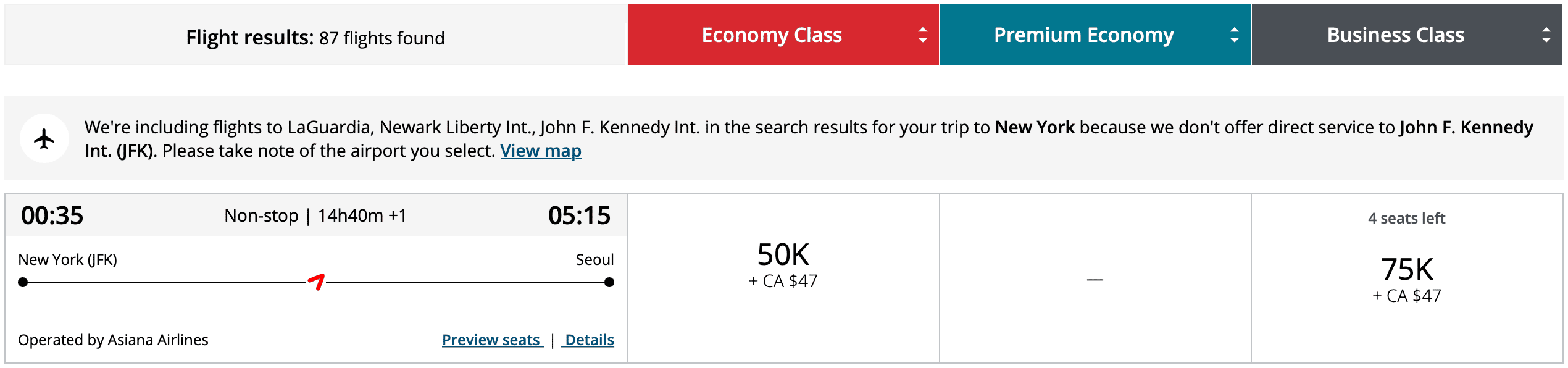 If you’re willing to take a detour via the United States, Asiana has decent availability across the board at the fixed rate.