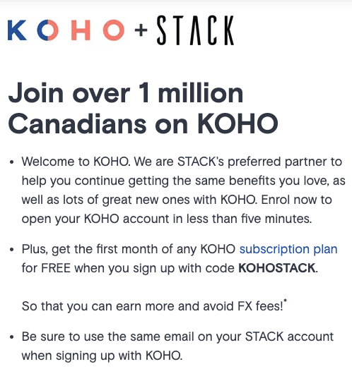 As an incentive, former Slack cardholders can use the promo code KOHOSTACK when signing up for a new Koho Prepaid Mastercard. This will include one free month of Koho Premium, which among other benefits, provides no foreign exchange fees and up to 4.5% interest on cash deposits.