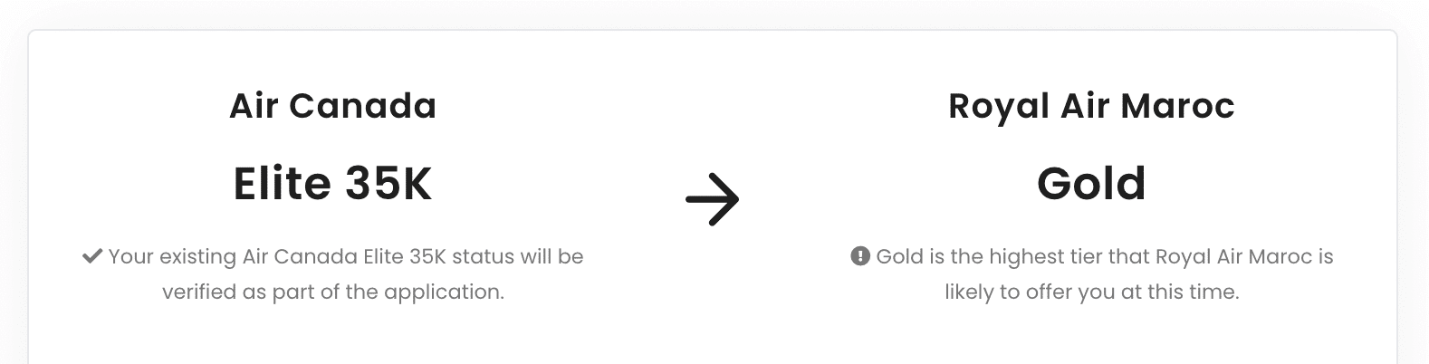 (Note that these represent “the highest tier that Royal Air Maroc is likely to offer you at this time”, as per StatusMatch.com. While I’d expect that the status match will come through as indicated, we’ll need to await some applicants’ real-life experiences for full confirmation.)