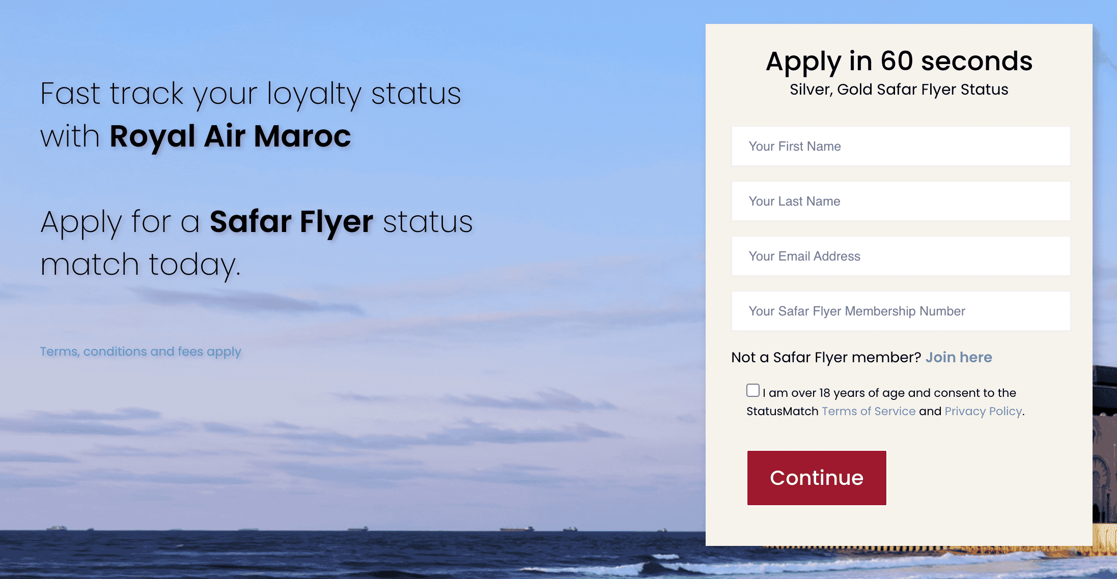 You’ll need a Royal Air Maroc Safar Flyer membership number to get started, and there are reports that the Safar Flyer signup process is inundated with new applications at the moment, so you might need to be patient while setting up your account.