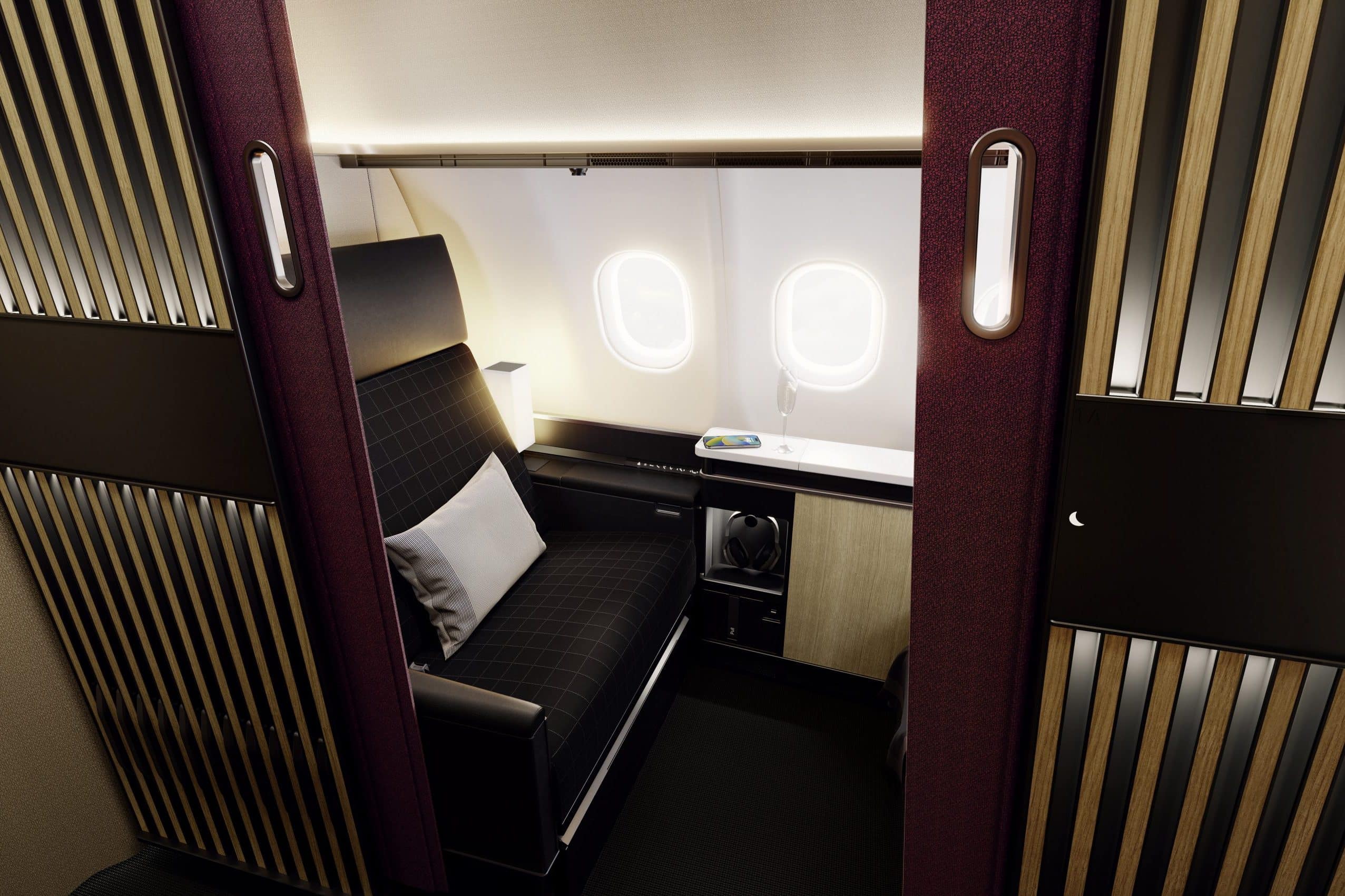 The window suites will have seats that are 77cm wide with heating and cooling controls, as well as a two-metre-long bed. The centre suite will feature a 117cm-wide seat, alongside a two-metre-long double bed, as well as heating and cooling controls.