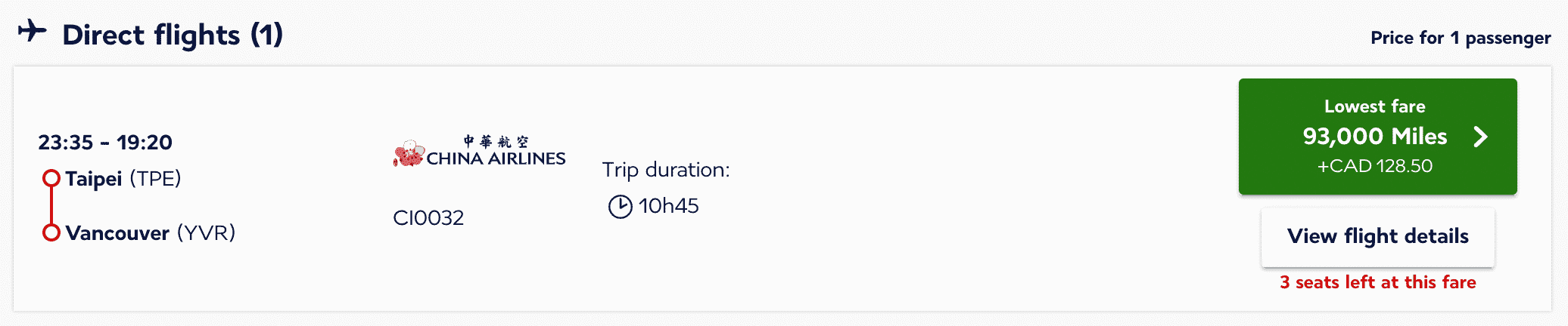 Lastly, if you’ve been collecting Air France/KLM Flying Blue miles, you can take advantage of a unique SkyTeam partner redemption in the form of China Airlines business class, which flies direct between Taipei and Vancouver for 88,000–93,000 Flying Blue miles.