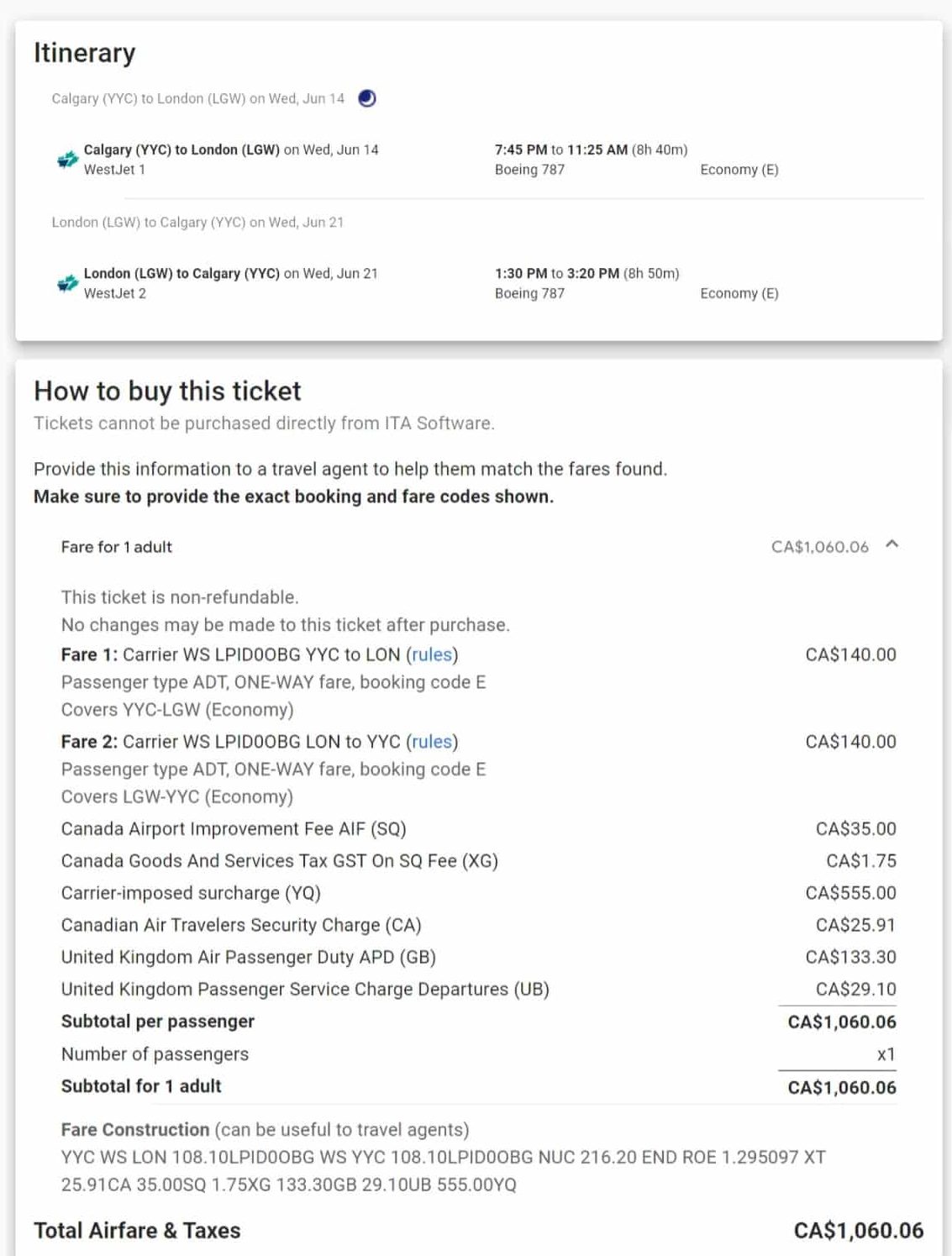 So, be sure to look at the breakdown of the fare to make sure you’re actually getting a good deal with the companion voucher from WestJet.