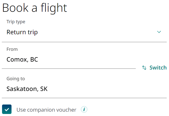 To redeem the companion voucher, you simply tick the “Companion voucher” box when searching for flights on the WestJet website.