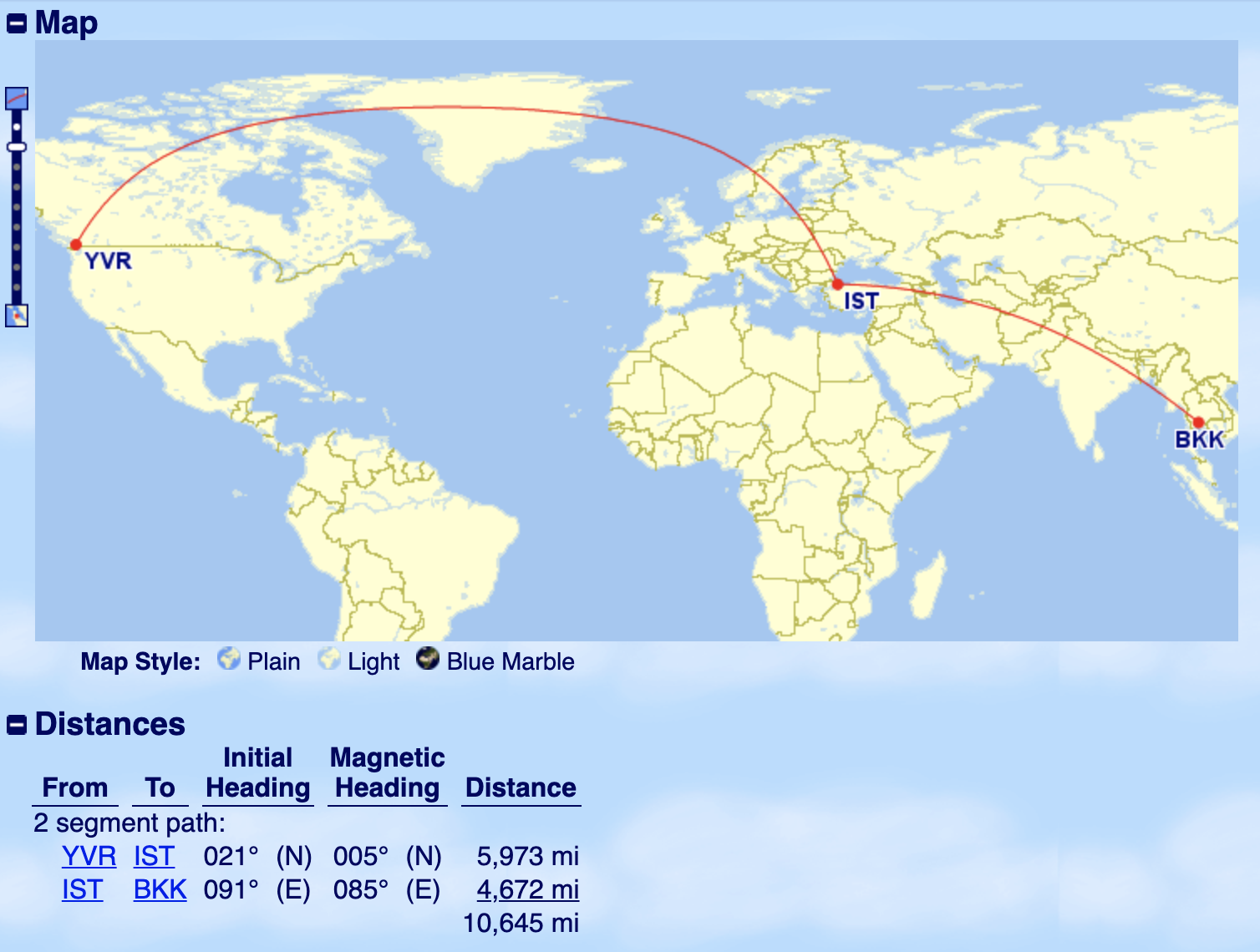 This ties into another potential (albeit minor) advantage for Atlantic Canadians: when an Aeroplan itinerary consists of only Air Canada flights, then it’s the point-to-point distance between the origin and destination that counts when calculating the points required, not the total distance flown.