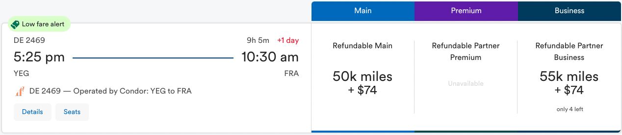 If you’d rather visit Europe instead of Asia, you can consider redeeming Alaska miles for a flight from Edmonton, Calgary, or Vancouver to Frankfurt with Condor for just 55,000 miles and a very modest amount of taxes and fees.