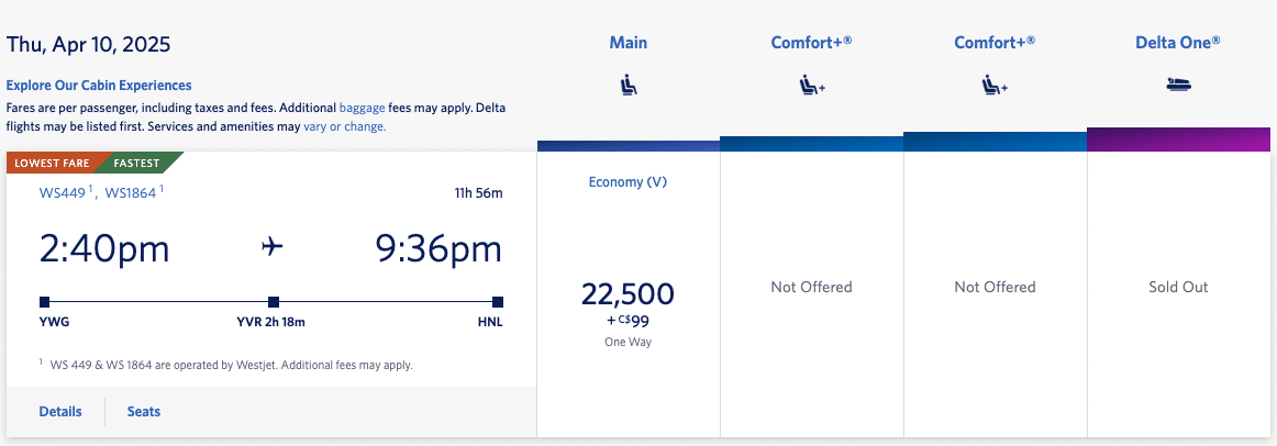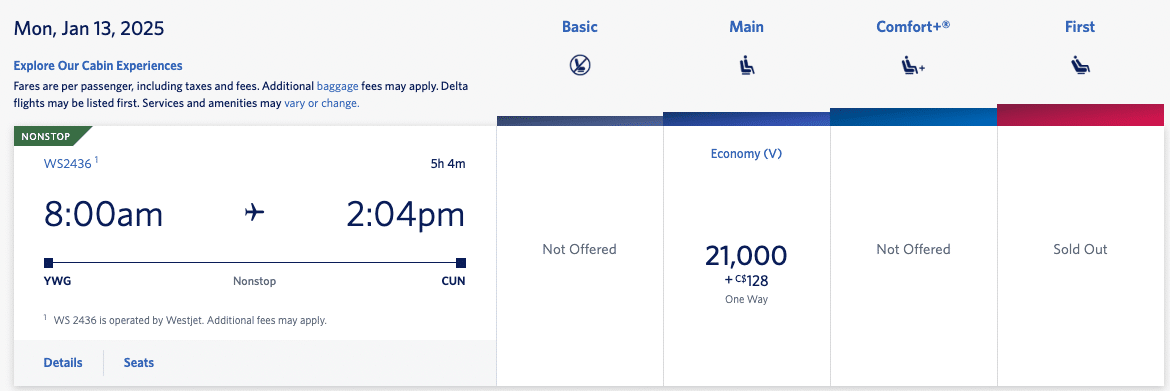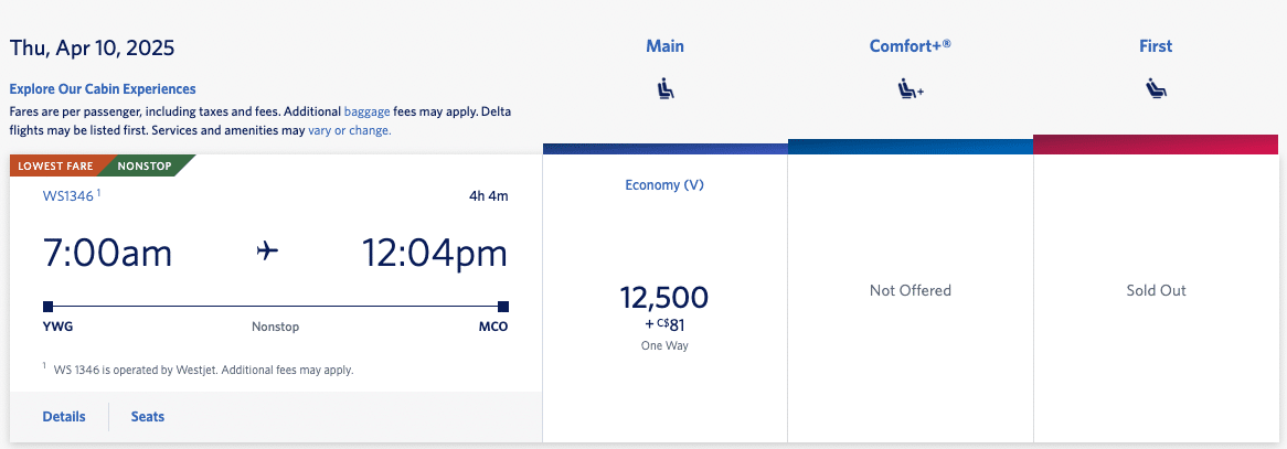 Plus, you can book WestJet flights with Delta SkyMiles at a fixed rate, which means that you can fly to anywhere in Canada or the United States for just 12,500 SkyMiles…