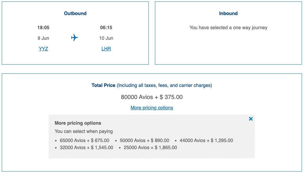 Keep in mind that there are often transfer bonuses from American Express Membership Rewards and RBC Avion to British Airways Executive Club. If you’re able to leverage one of these, then the Reward Flight Saver price starts to look quite attractive, even with the relatively high amount of fees compared to, say, Aeroplan.