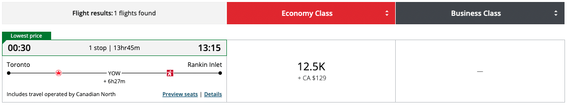 Indeed, with round-trip fares up to our country’s northern communities often reaching four-figures, being able to pay just 12,500+ Aeroplan points for a one-way flight instead is an incredible deal.