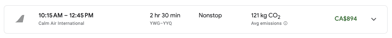 For example, a one-way flight between Winnipeg and Churchill might price out at around $894 (CAD).