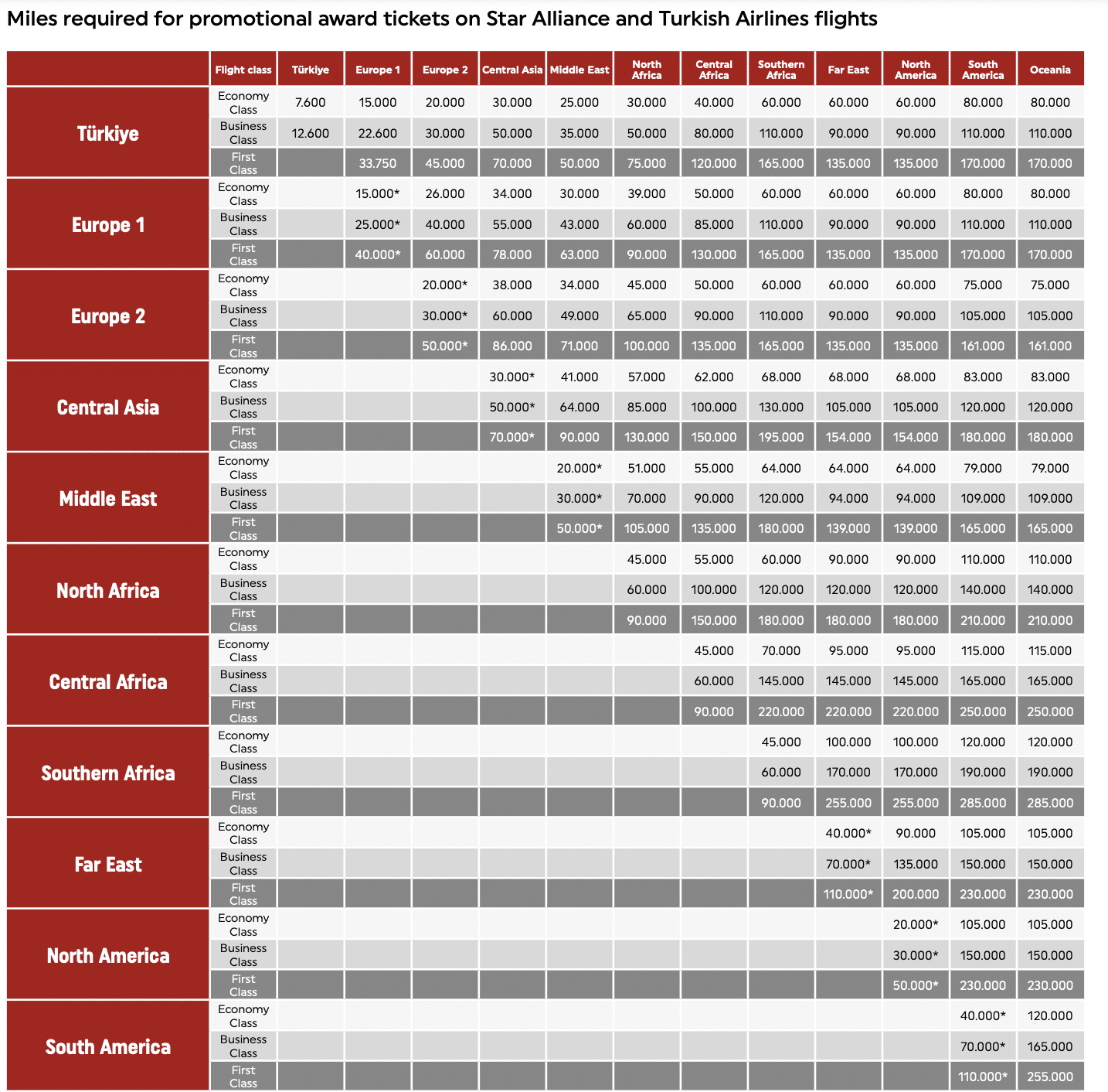 Now, Turkish Airlines has published one chart for awards with Turkish Airlines, and another for flights with Star Alliance airlines.