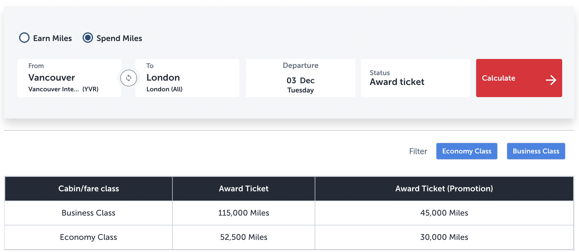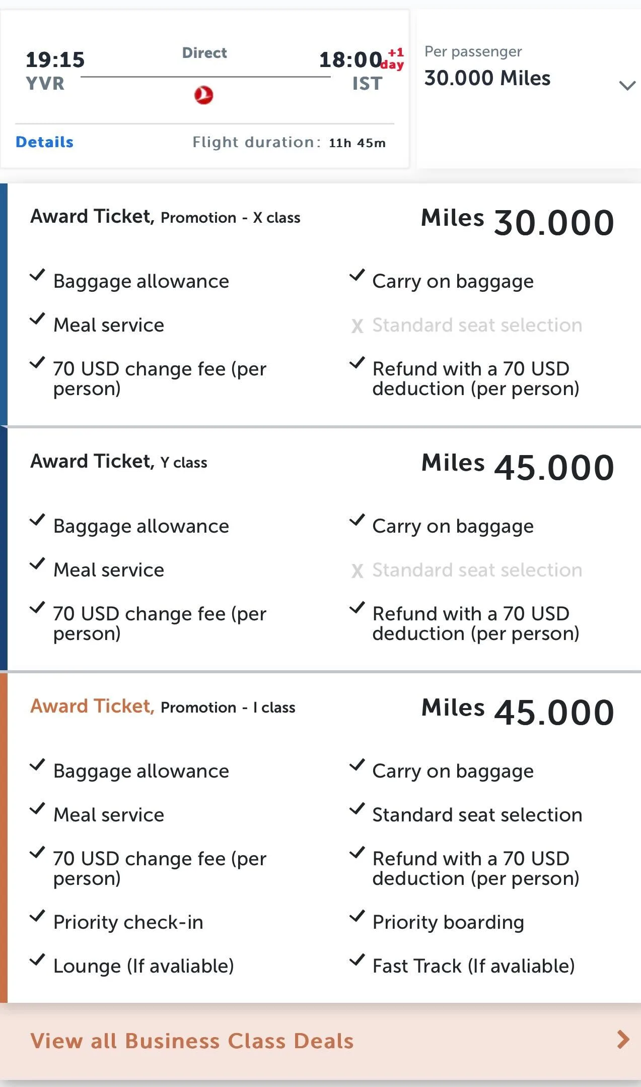 By comparison, a one-way flight from Vancouver to London via Istanbul with the historical pricing should work out to be 30,000 miles in economy, assuming you can find a Promotion Award Ticket.