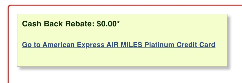 The other consideration is whether this card will return to Great Canadian Rebates (GCR). In the past, GCR offered a generous $50 cash back rebate on the Amex Air Miles Platinum, which brought the net annual fee down to $15; however, that offer appears to be inactive at the moment.