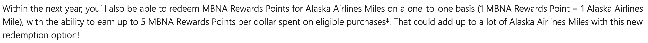 The exact details about this change have yet to be released, and we don’t yet know the date from which it’ll be possible to transfer MBNA Rewards into Alaska miles.