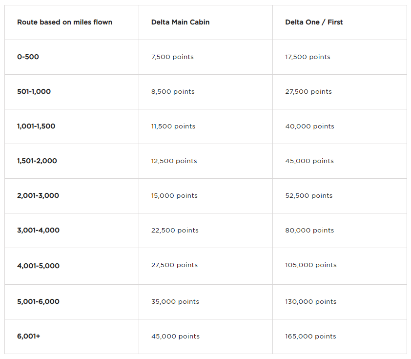 For example, here’s the old chart for Delta flights booked with Virgin Points, excluding flights to the UK and Europe.