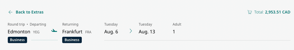 That’s because round-trip flights in Condor Airlines business class can typically be booked for around $3,000 (all figures in CAD), with one-way itineraries sometimes pricing out at slightly over half of the cost of a round-trip booking.