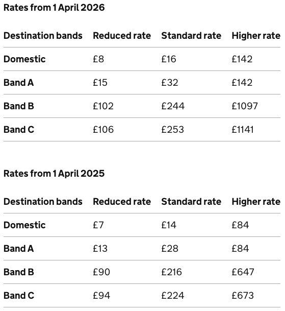While these increases may not seem like much, the UK APD fee is in addition to carrier-imposed surcharges and other applicable taxes.