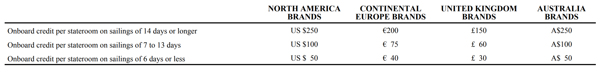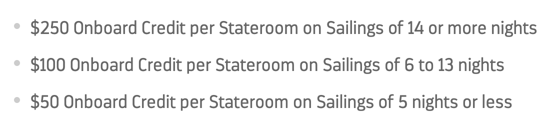 You must submit your request for the onboard credit 2–3 weeks prior to the sailing date.