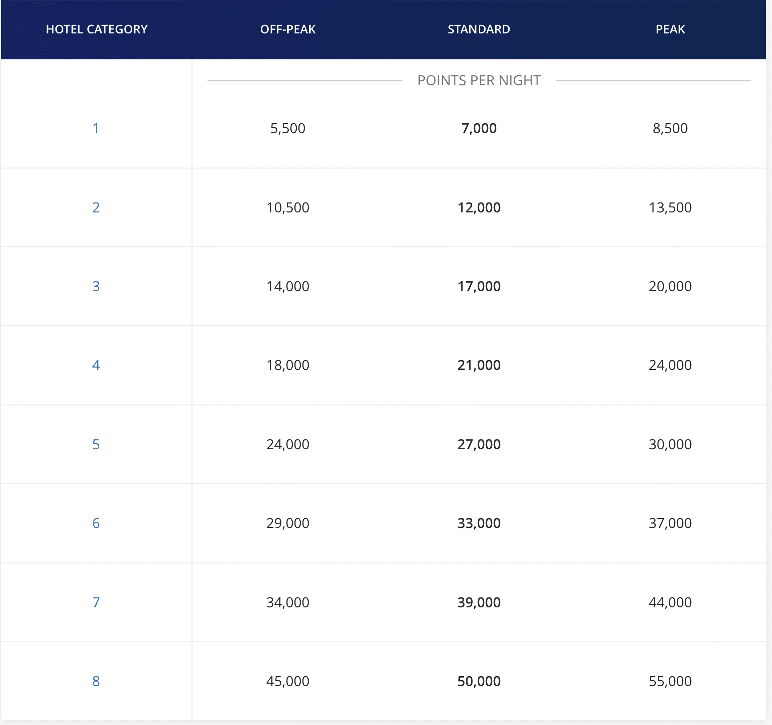 It’s important to note that there aren’t any changes to the award chart pricing structure. There will still be eight categories, with off-peak, standard, and peak pricing for each.