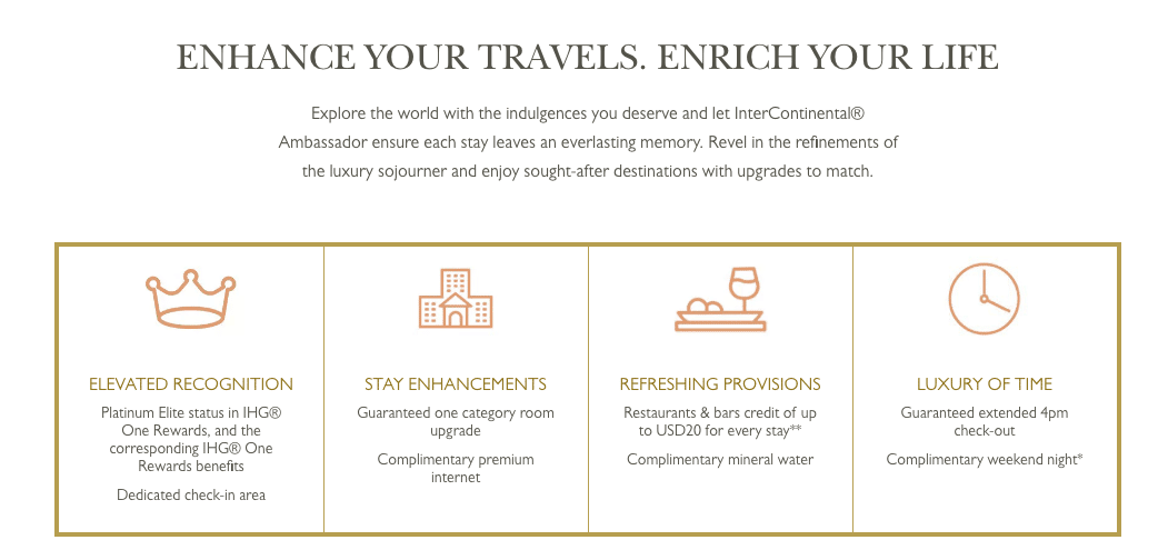 In addition, you’ll receive the following perks at InterContinental Hotels & Resorts: