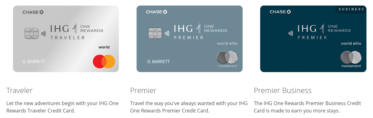 On the other hand, the higher-end Chase IHG Rewards Premier Credit Card and the Chase IHG Rewards Premier Business Credit Card fetch an annual fee of $99, though their welcome bonus can be as many as 175,000 points.