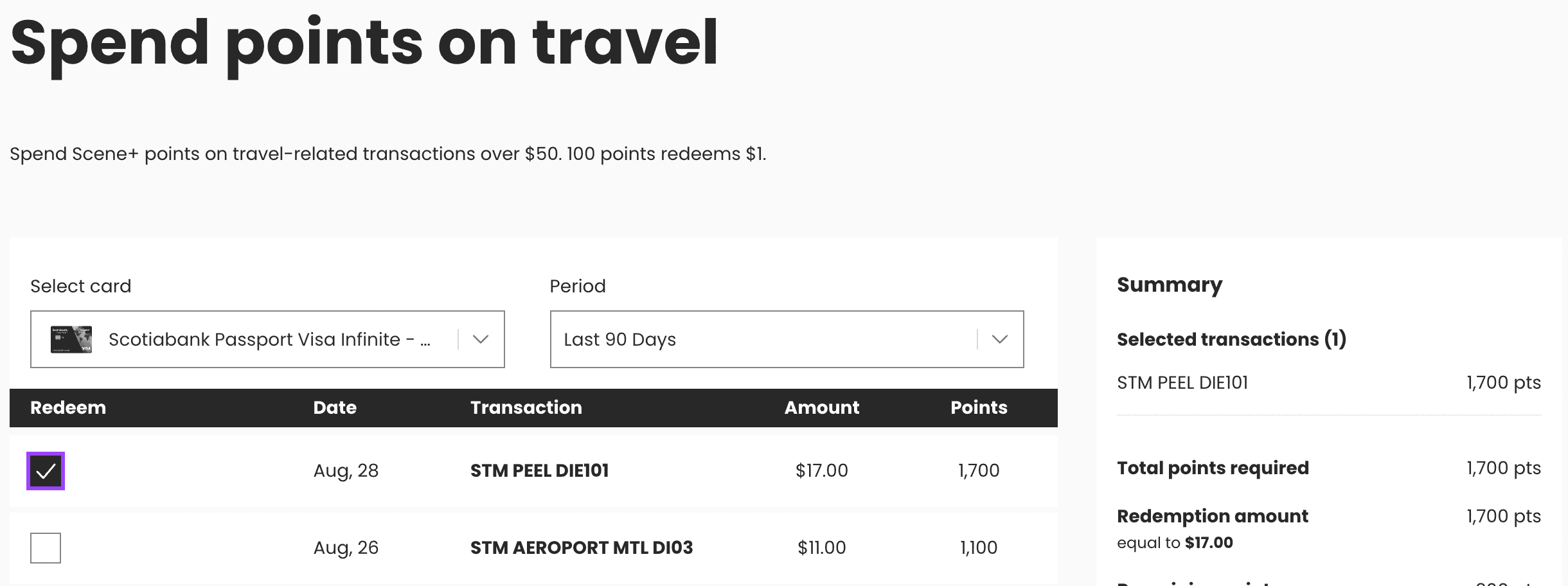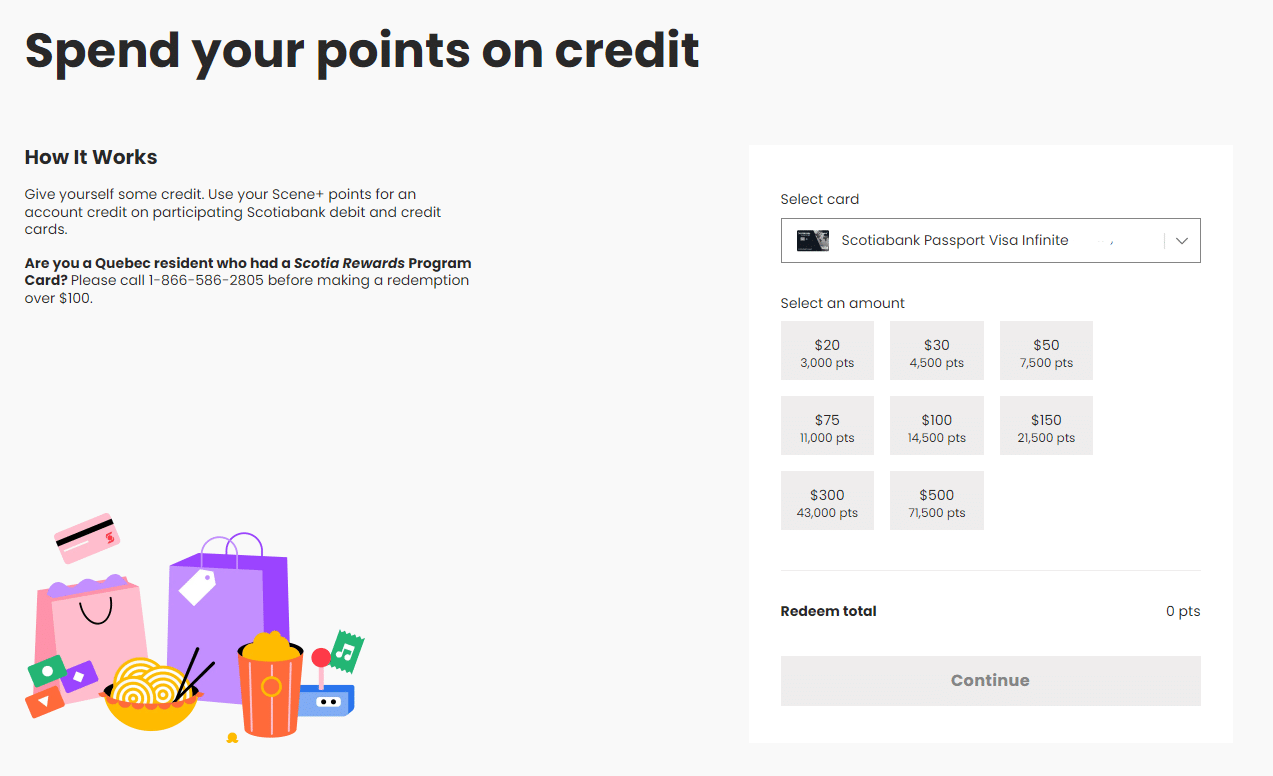But since it could also be applied as a credit towards your linked Scotiabank debit card, you can, technically-speaking, convert your Scene+ points to cash that you can withdraw.