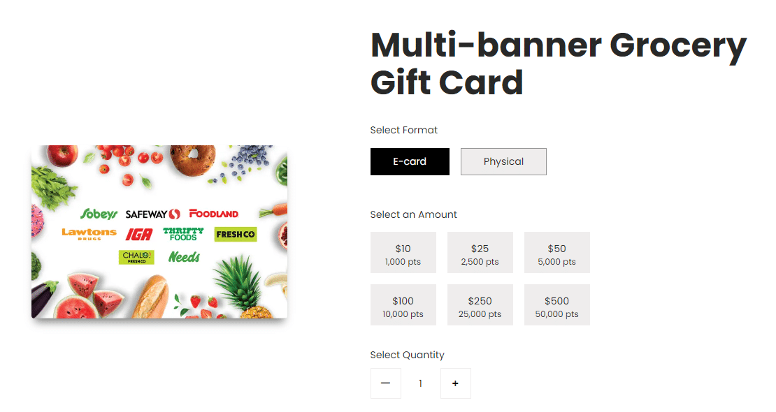 At Empire Company grocery stores (Sobeys, Safeway, FreshCo, Foodland, IGA, etc.) nationwide, you can redeem blocks of 1,000 points to get $10 off your bill directly.