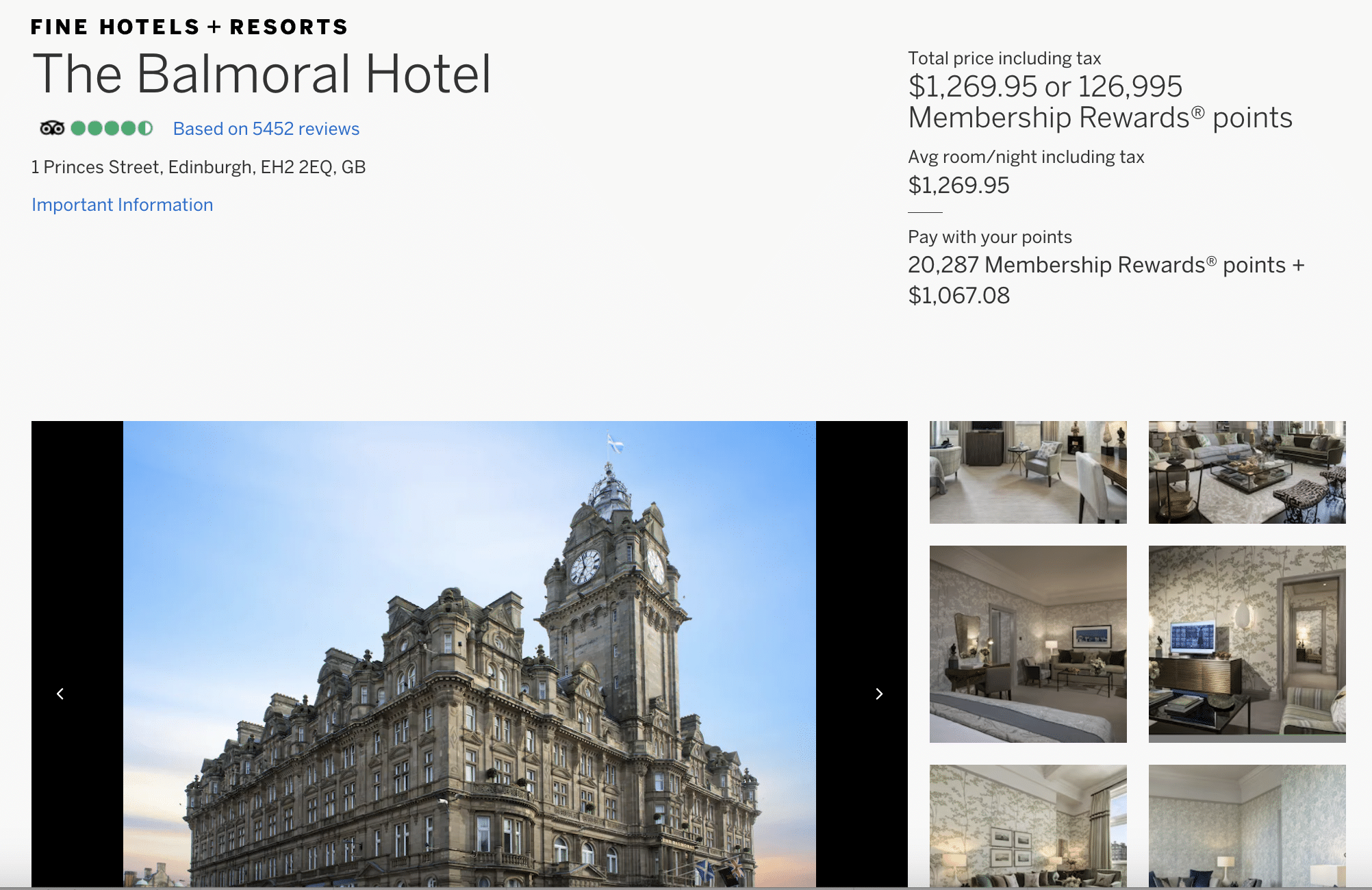 Another way to book a stay at a Rocco Forte hotel is by using the American Express Fine Hotels + Resorts (FHR) program. This program is easy to use since you can access it and book on your own; however, you do need to be an American Express Platinum cardholder to gain access.