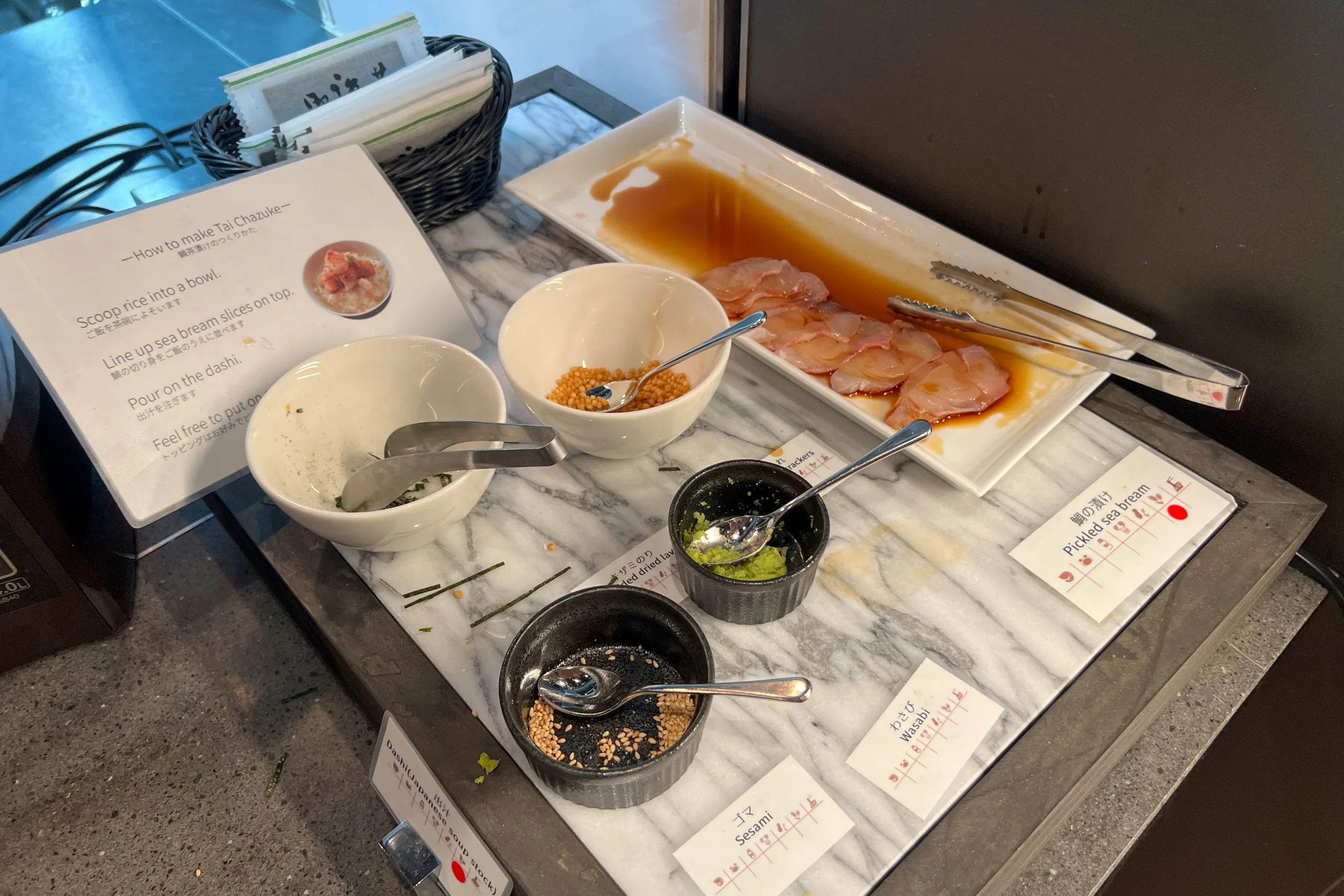 Local flavours included shrimp, steamed gyoza, grilled fish, miso soup, and tai chazuke, among other delicacies.