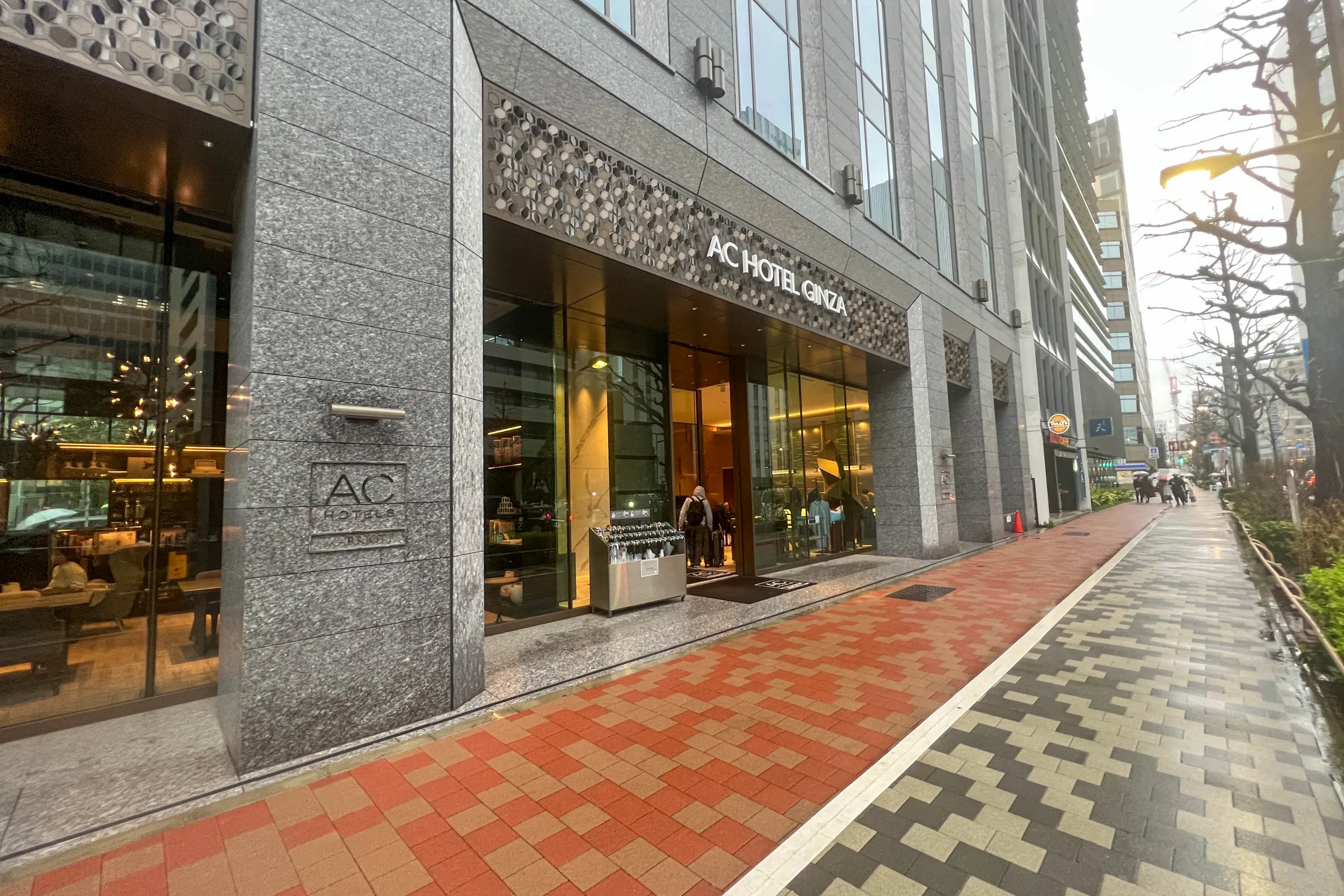 Right at the entrance, “AC Hotel Ginza” was displayed boldly above, flanked by stone pillars on which the hotel’s name was also subtly etched.