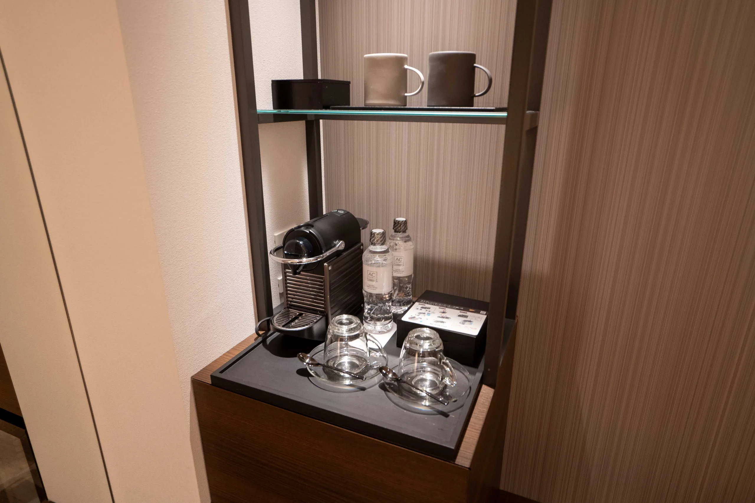 Directly in front of the seating area lies a minibar; however, it was only stocked with water. To my delight, the room also boasts a Nespresso machine, which I wasn’t necessarily expecting out of an AC Hotel.