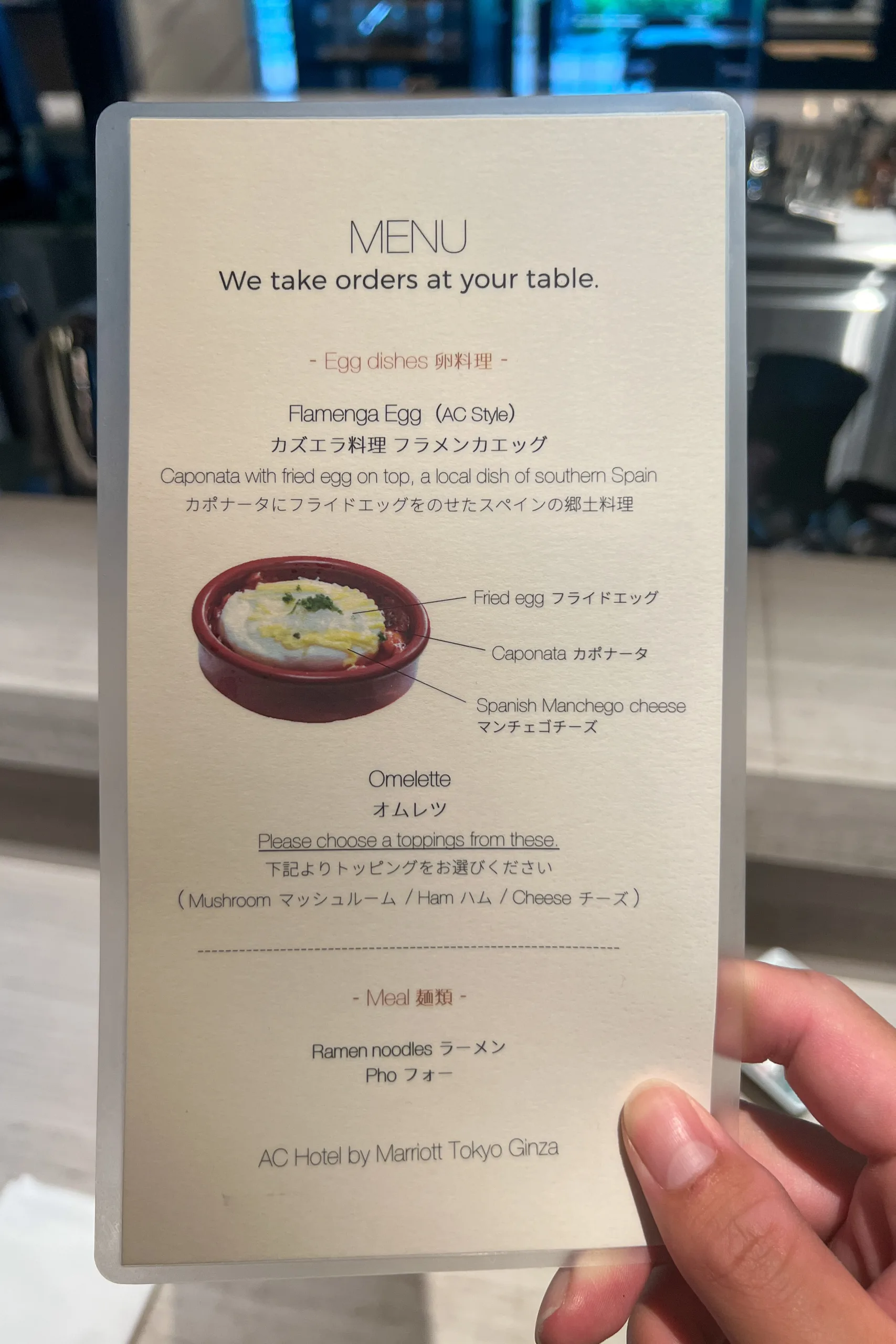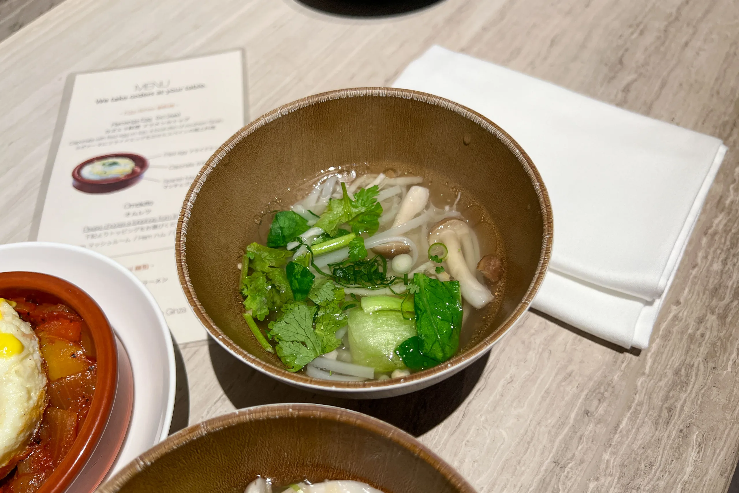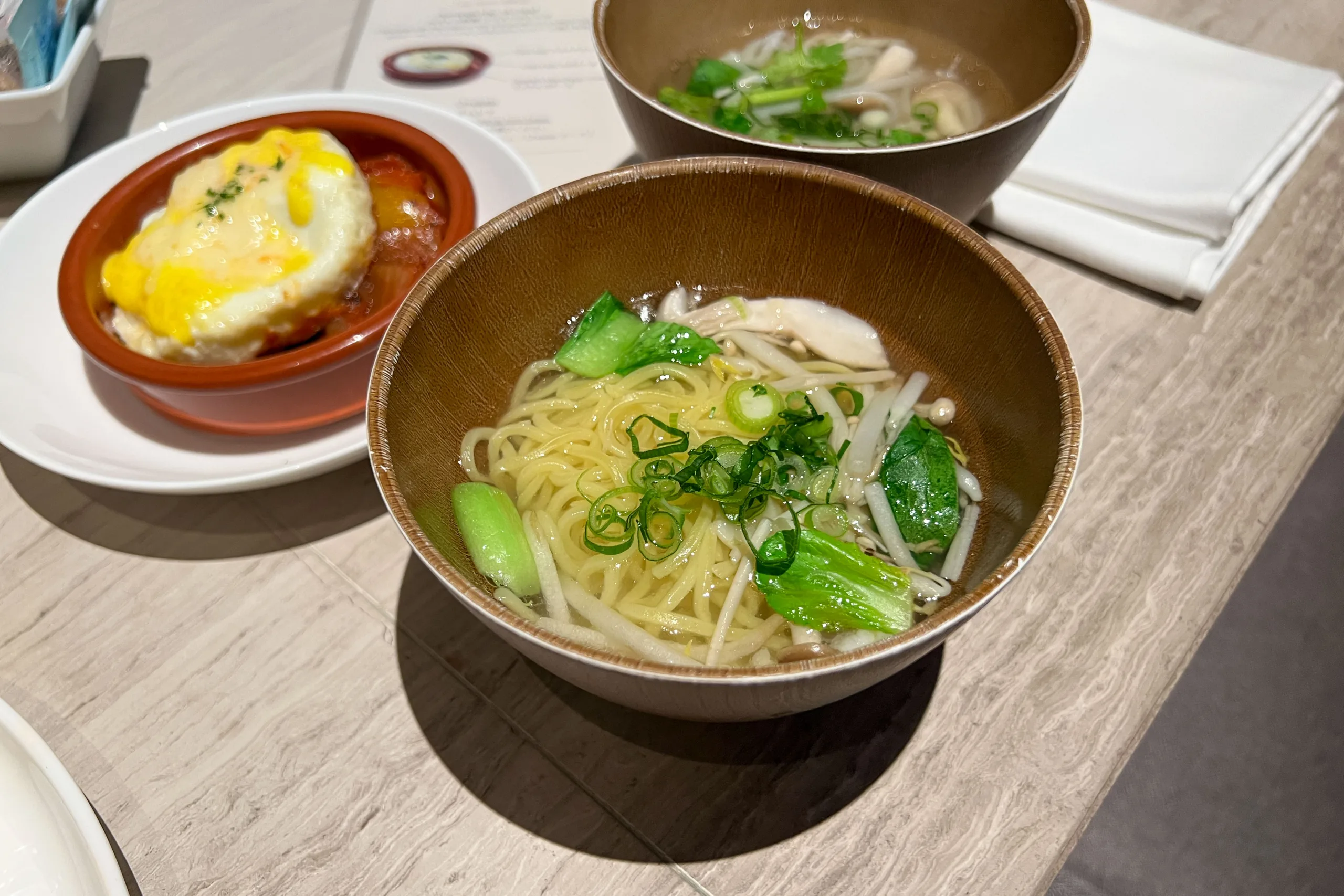 The à la carte menu was concise, featuring a variety of egg dishes, along with pho and ramen noodles.